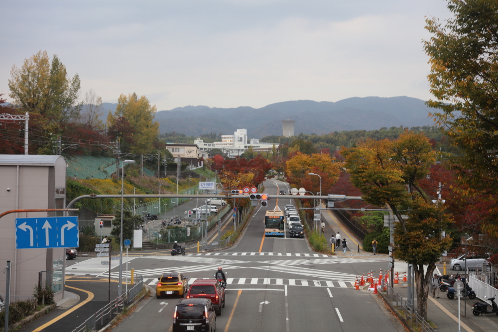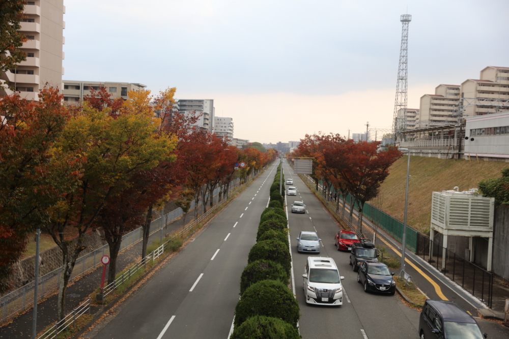 | 北千里けやき通り陸橋から北を望む。全体に色づいてきたのがよくわかる。 | |