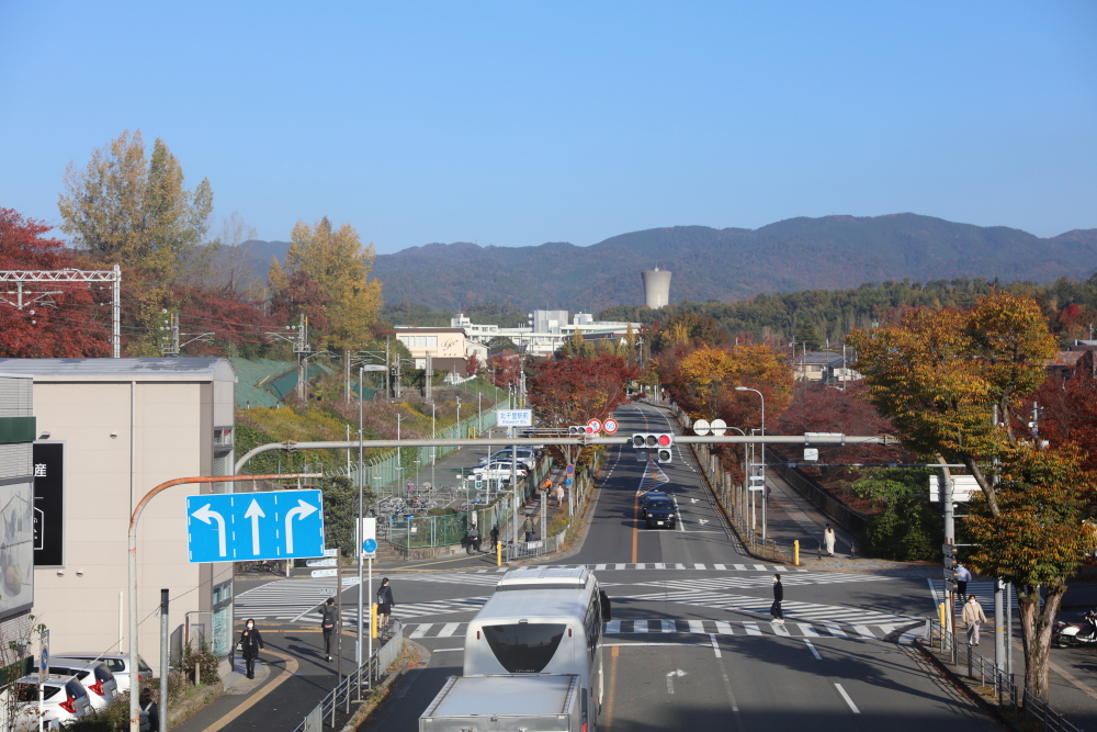 | 阪急北千里駅近く合歓の木道陸橋から北方向。 色づいているのはナンキンハゼ | |