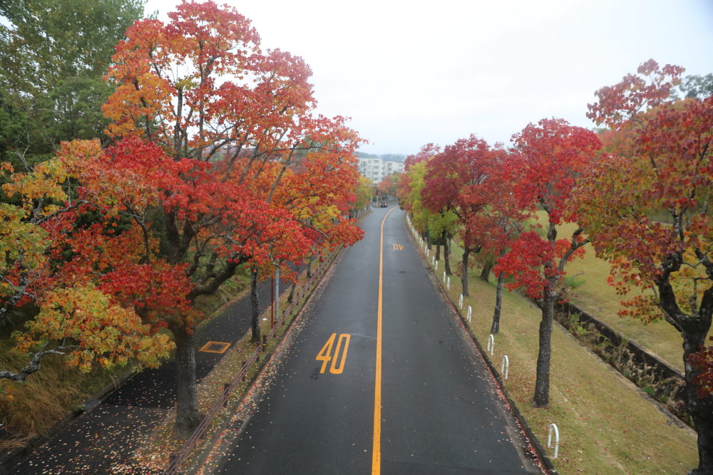 | 東西に走る三色彩道の紅葉はあと一息。 | |