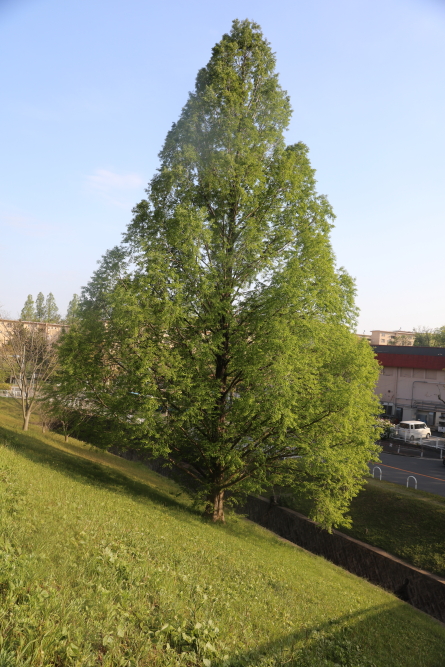 | わが青山団地内にもメタセコイアの並木があるのだ。その下を通るときは涼しくすがすがしい。 | |